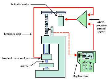 高精度壓痕深度光柵位移傳感器與力傳感反饋回路及控制器閉環(huán)式連接。位移分辨率0.001um。
